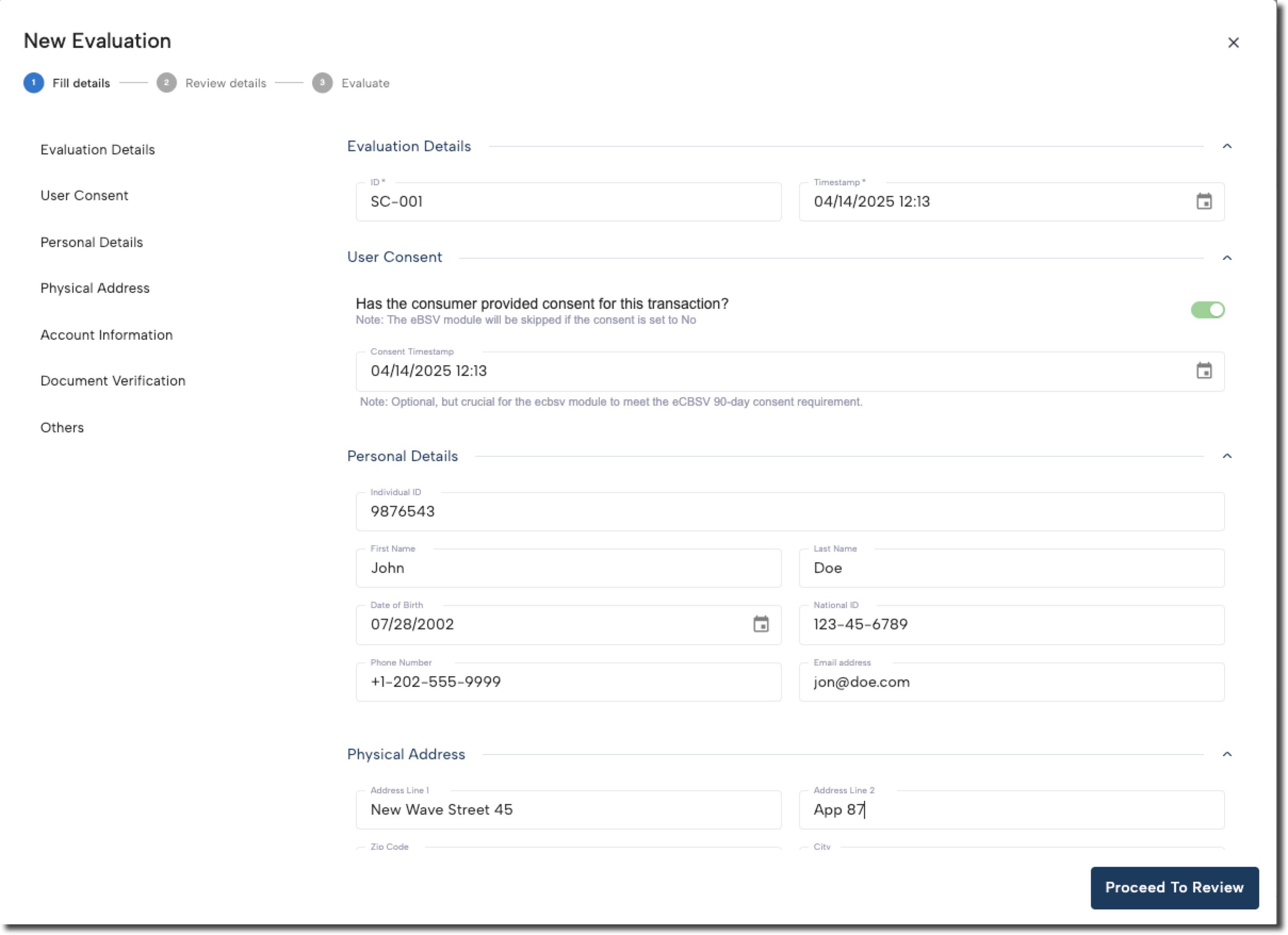 - Personal Details: The consumer's PII such as name, address, and national ID.