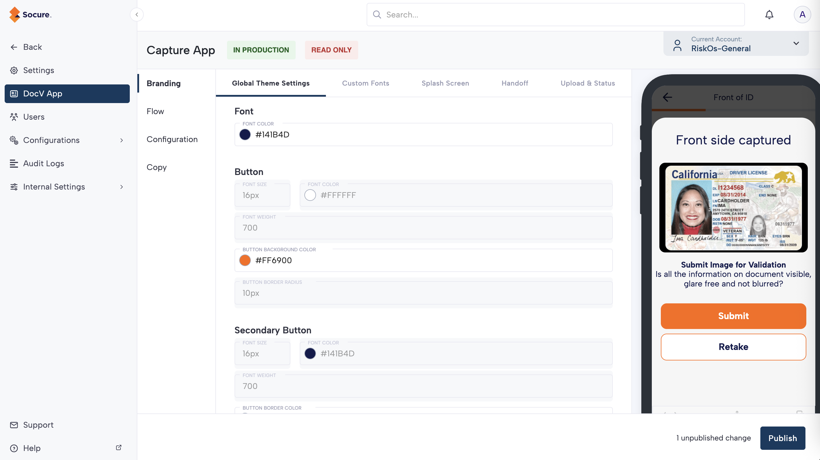 Learn how to customize the Capture App UI in your Predictive Document Verification (DocV) Native or Web SDK to match your organization’s style and branding.
