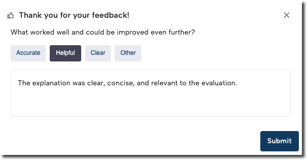 If you believe the AI explanation is not helpful or inaccurate, you can provide your feedback for that specific explanation