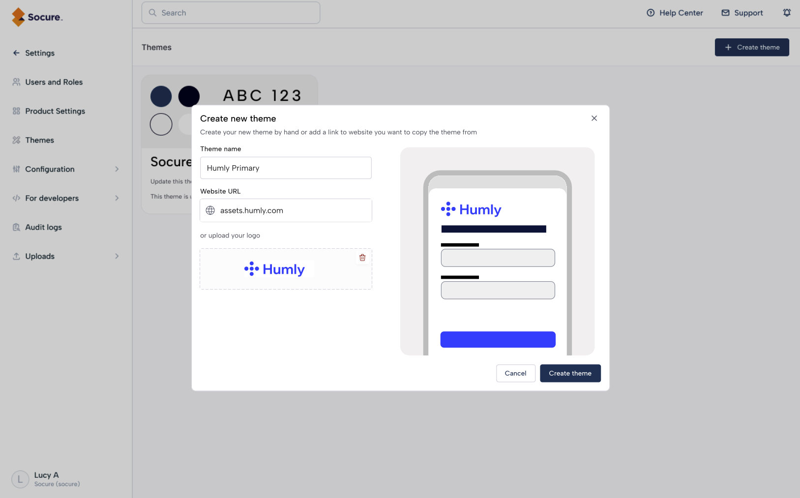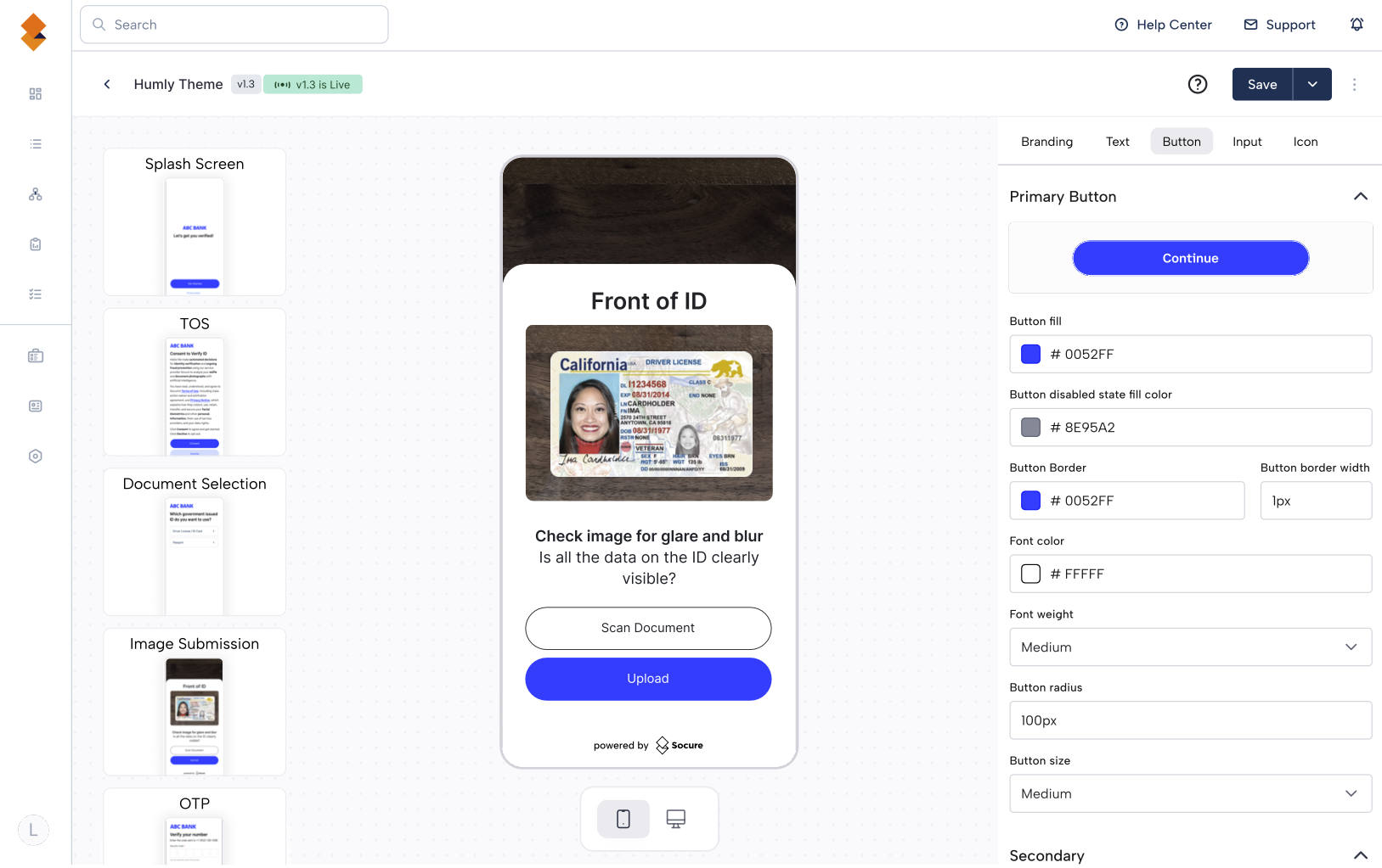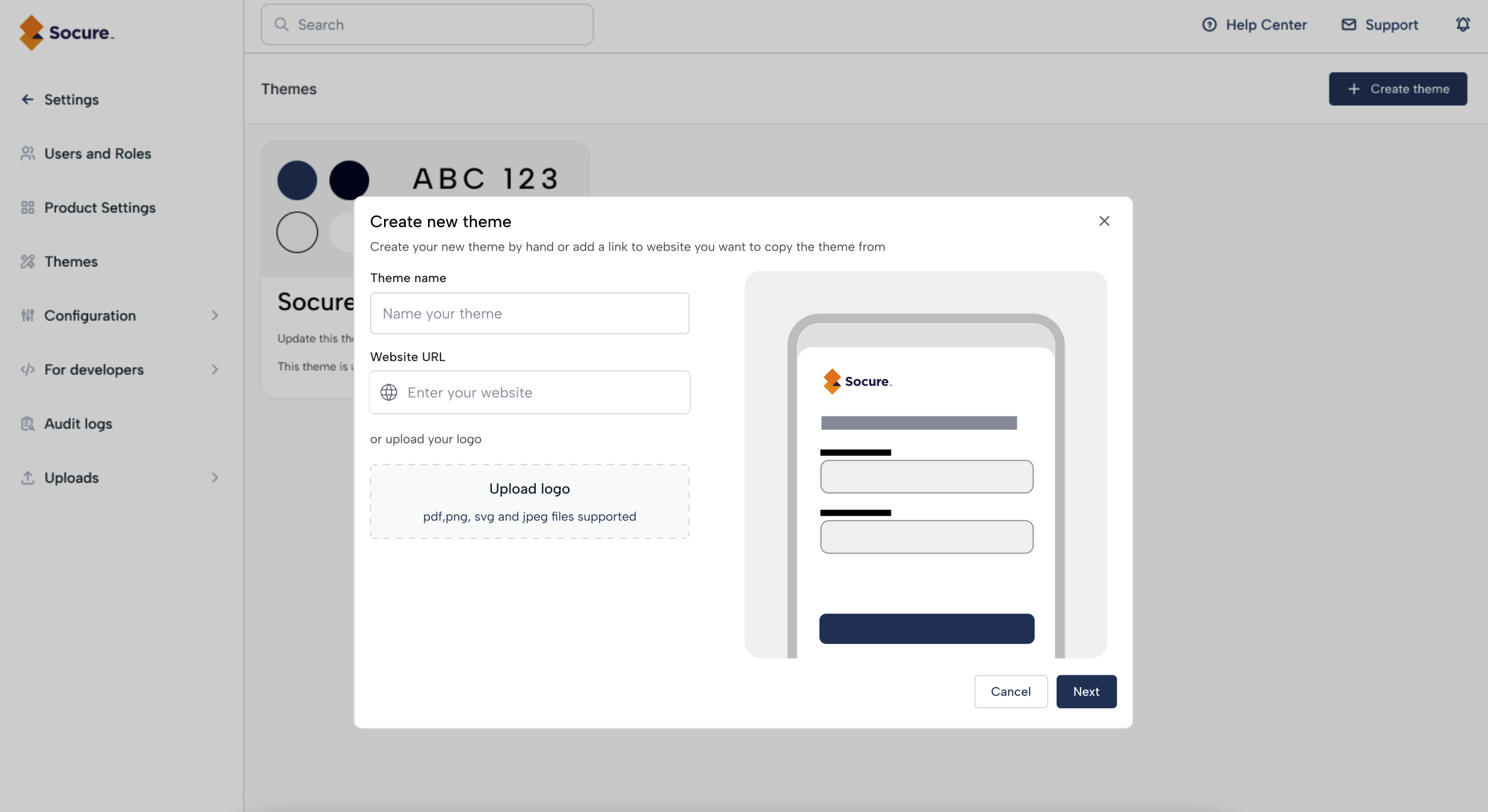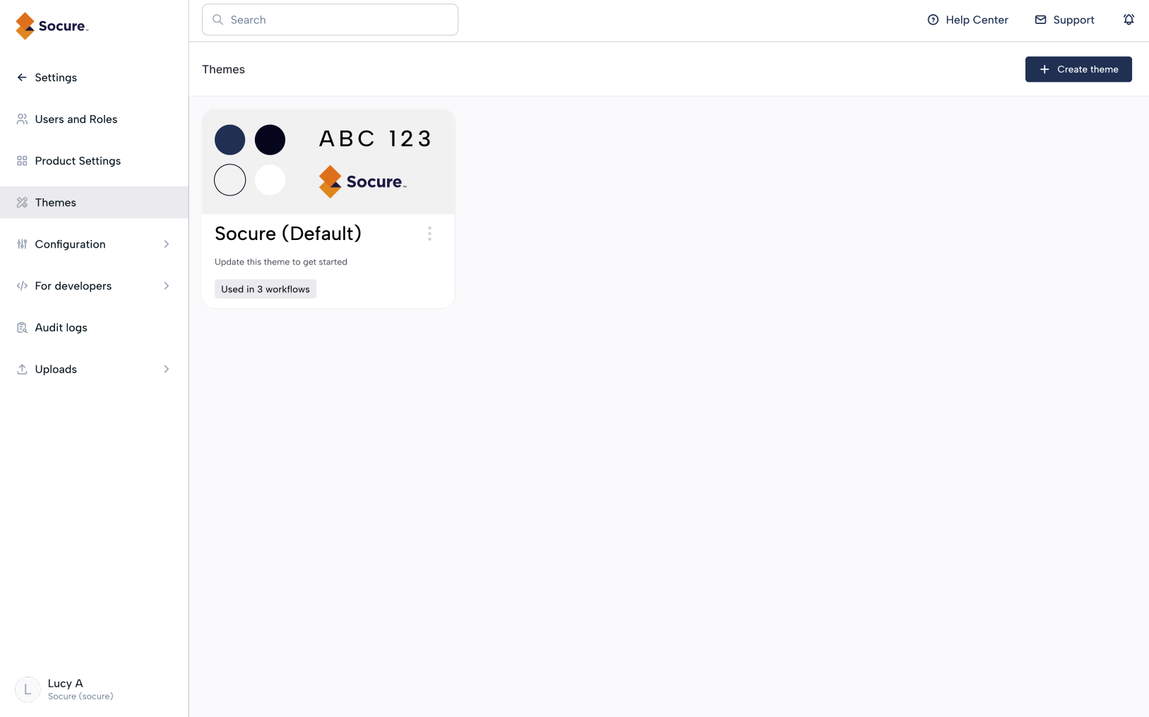 - Start with the default Socure theme or create new ones (helpful if you manage multiple brands).