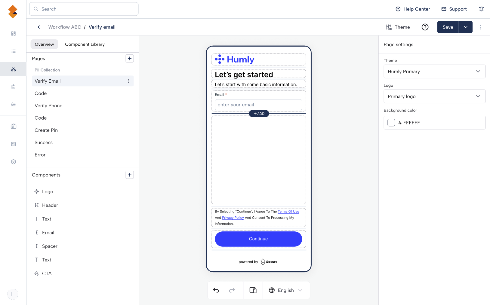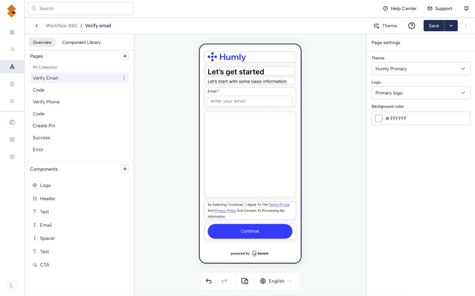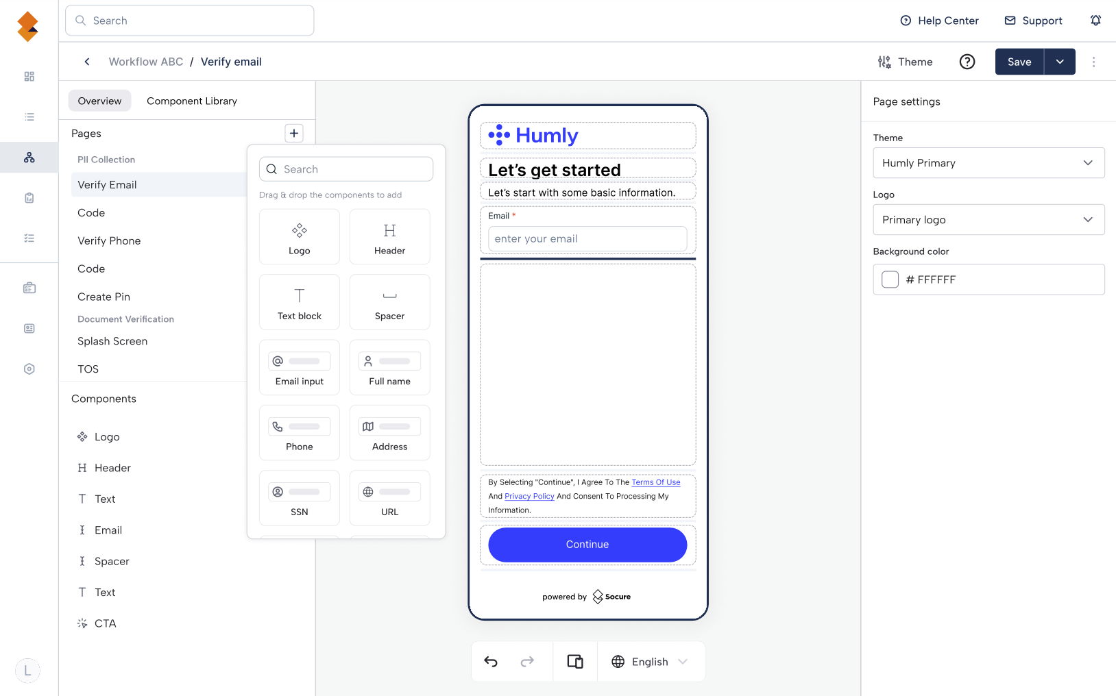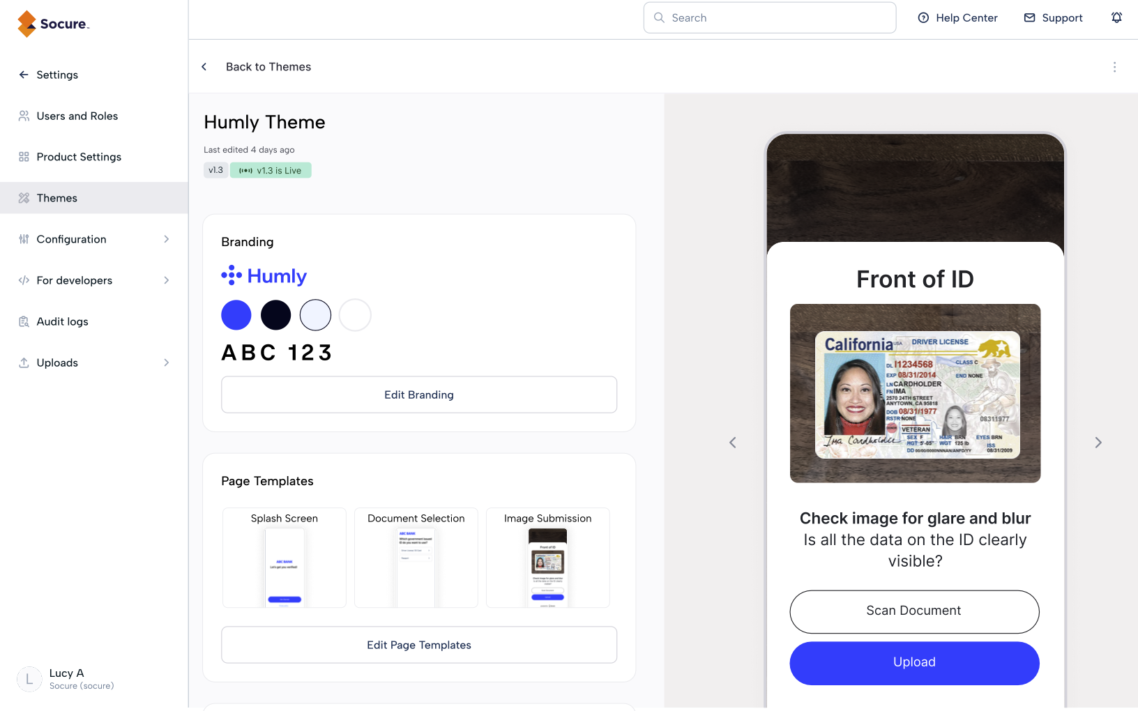 - Start with the default Socure theme or create new ones (helpful if you manage multiple brands).
