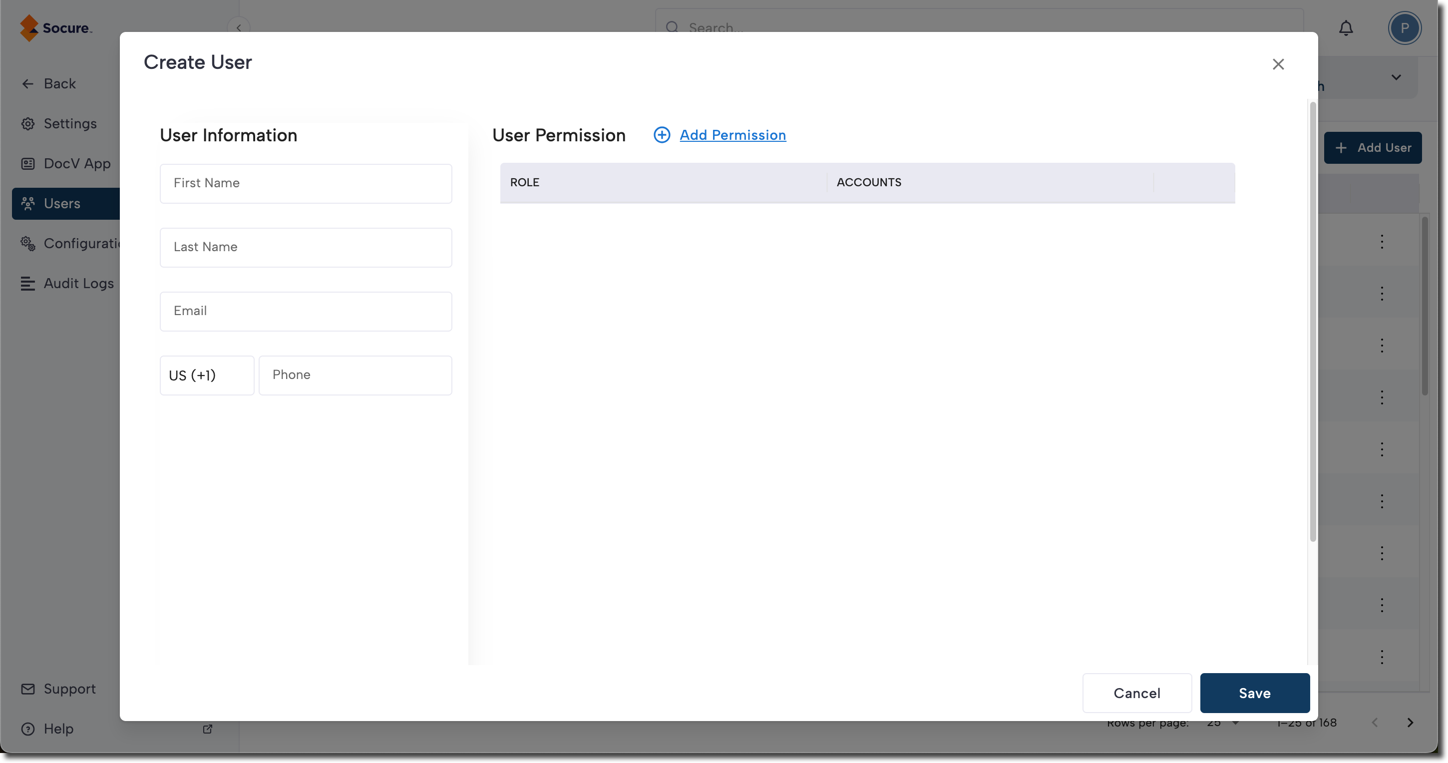 - Under User Information, enter the user’s first and last name, email address, and phone number.