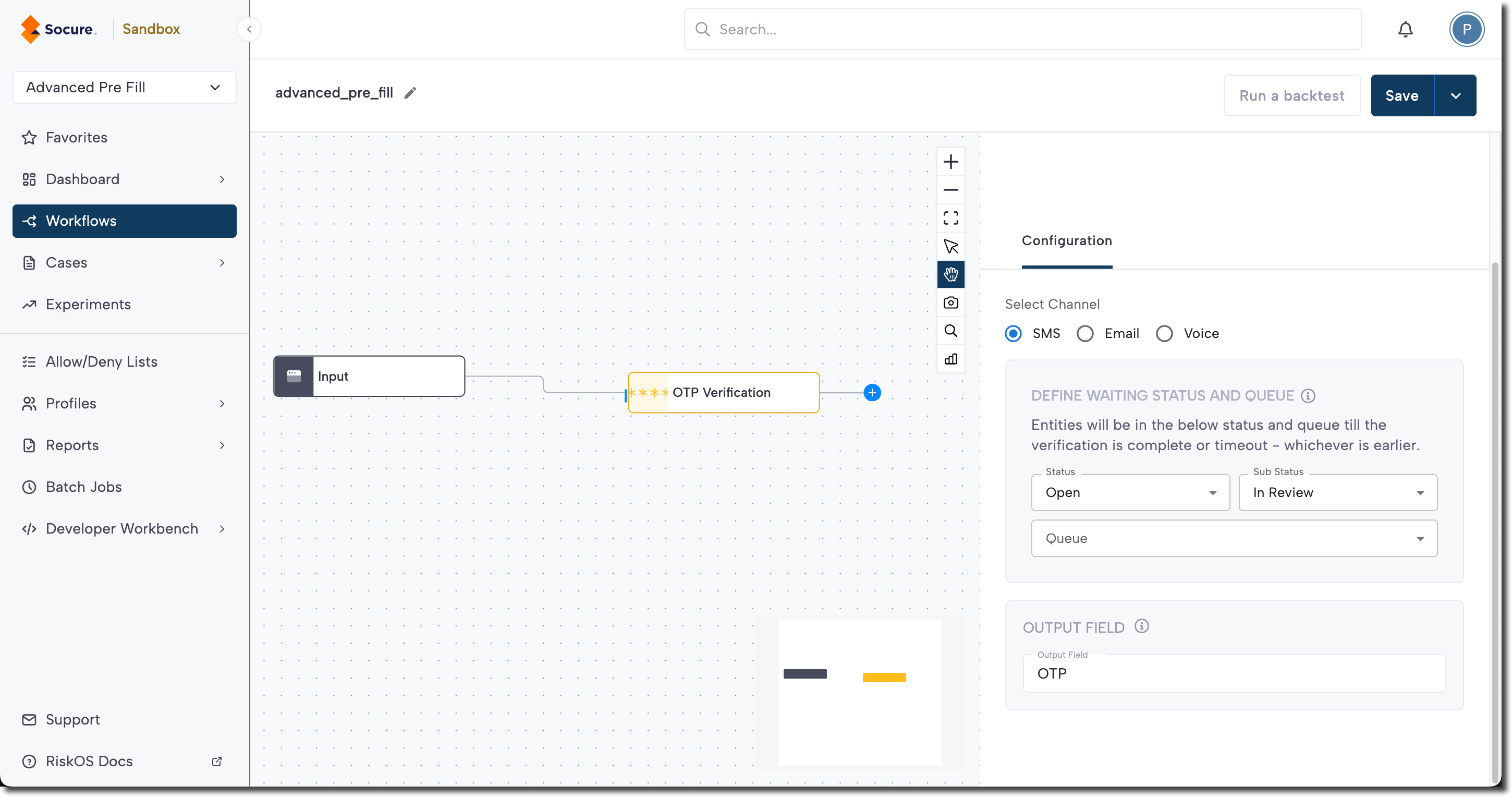 - Define Output Field: Enter the field name where the OTP result will be stored. You can reference this field later in the workflow or in your API response.