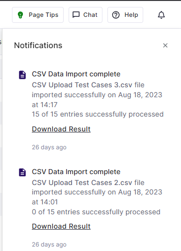 The notification will indicate how many rows were processed successfully. You’ll see an option to Download Result, which includes error details in case specific rows failed.