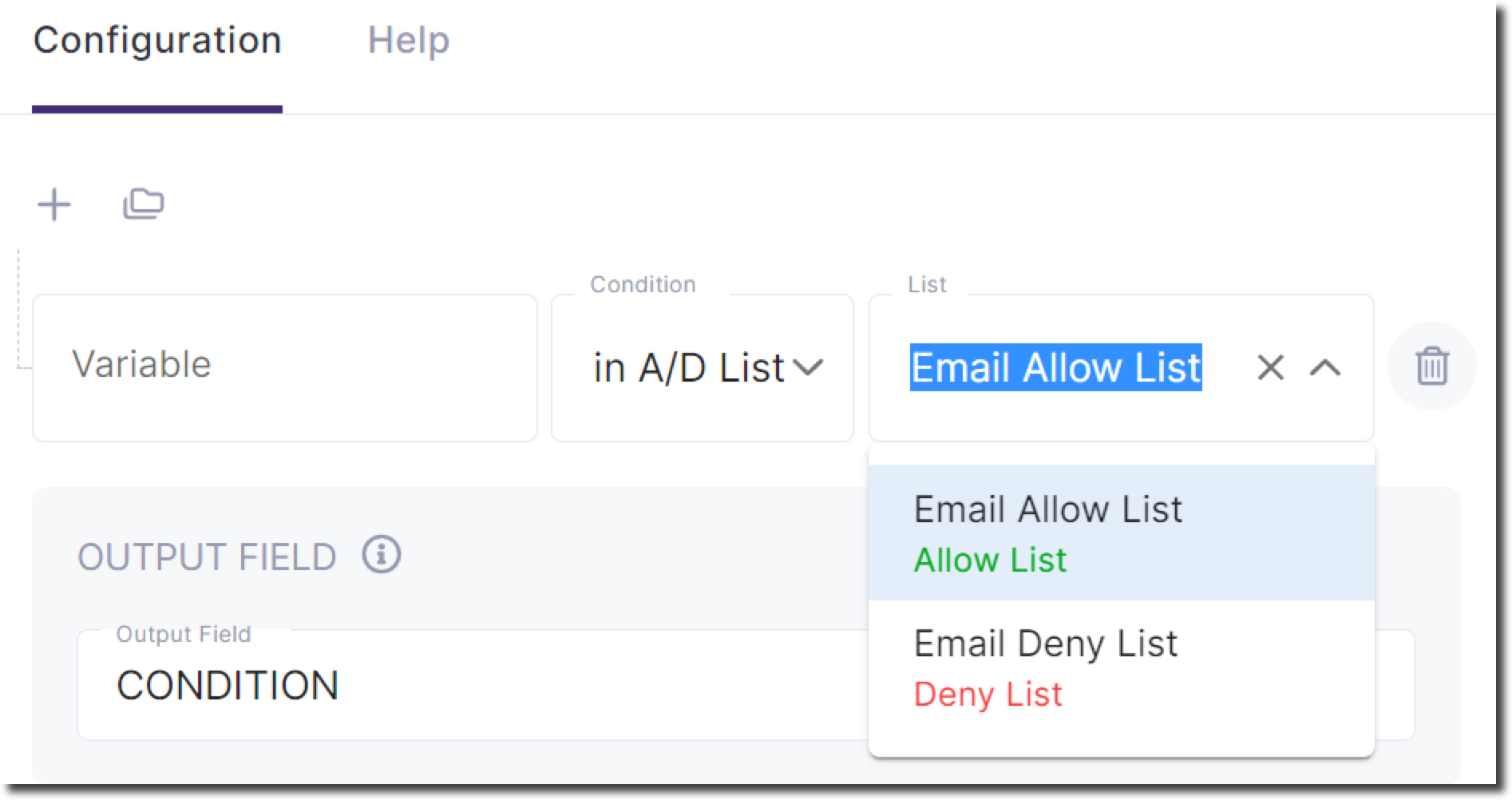 Once a list is configured, it can be used in a workflow to automate the evaluation process.