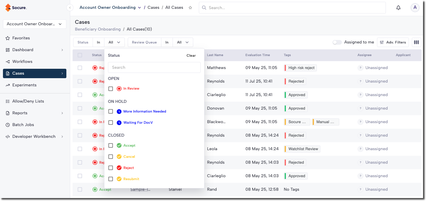 Case Queues allow users to manage and track cases that have been flagged for manual review in a workflow.